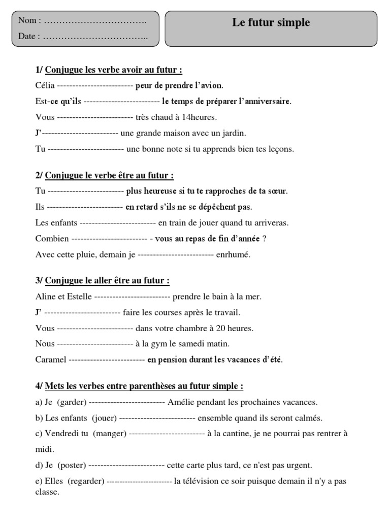 Exercice De Conjugaison Cm1 : Conjuguer Au Futur Simple Exercices D Entrainement L Ecole D Ailleurs - L'exercice conjugaison cm1 est tout à fait complet.